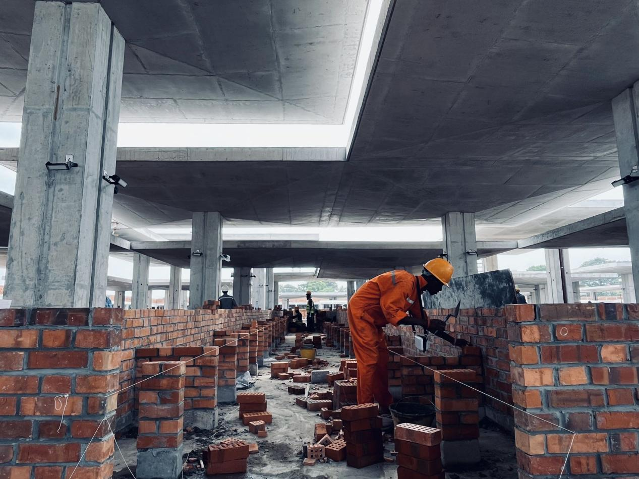 After the main construction was completed, he expressed a desire to become a bricklayer, which is puzzling. After we questioned him repeatedly, he sheepishly admitted, "The year before I started working on the project, I was unemployed, and I had no skills, especially in Kinshasa, a city with a large population where jobs were hard to find. I helped my wife sell clothes in the original ZANDO market. My wife and I have been married for seven or eight years, and we struggled for seven or eight years. Our children were still young, and life was difficult. When I saw that the project was hiring workers. I didn't hesitate to come for an interview. Because I didn’t have many skills, I could only work as a handyman at the beginning. I am especially grateful to my Chinese master, Lao Han, who patiently taught us the knowledge of site construction and how to read drawings. I have been able to take on more and more tasks. The project department has also promoted me and increased my salary, which has greatly improved our home conditions. I told my wife to stop working at the stall because the environment was too harsh and painful, and now I can support my family. However, she insists on continuing to run the stall to ease my burden. I was touched and I knew she had always wanted to have a clean stall. I wanted to build it for her as a gift, so I asked to learn how to lay red bricks." Alan's eyes moistened as he spoke, and the project team immediately agreed to his request.