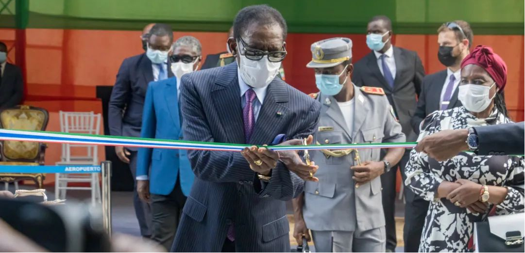 President Obiang cuts the ribbon to inaugurate the new terminal