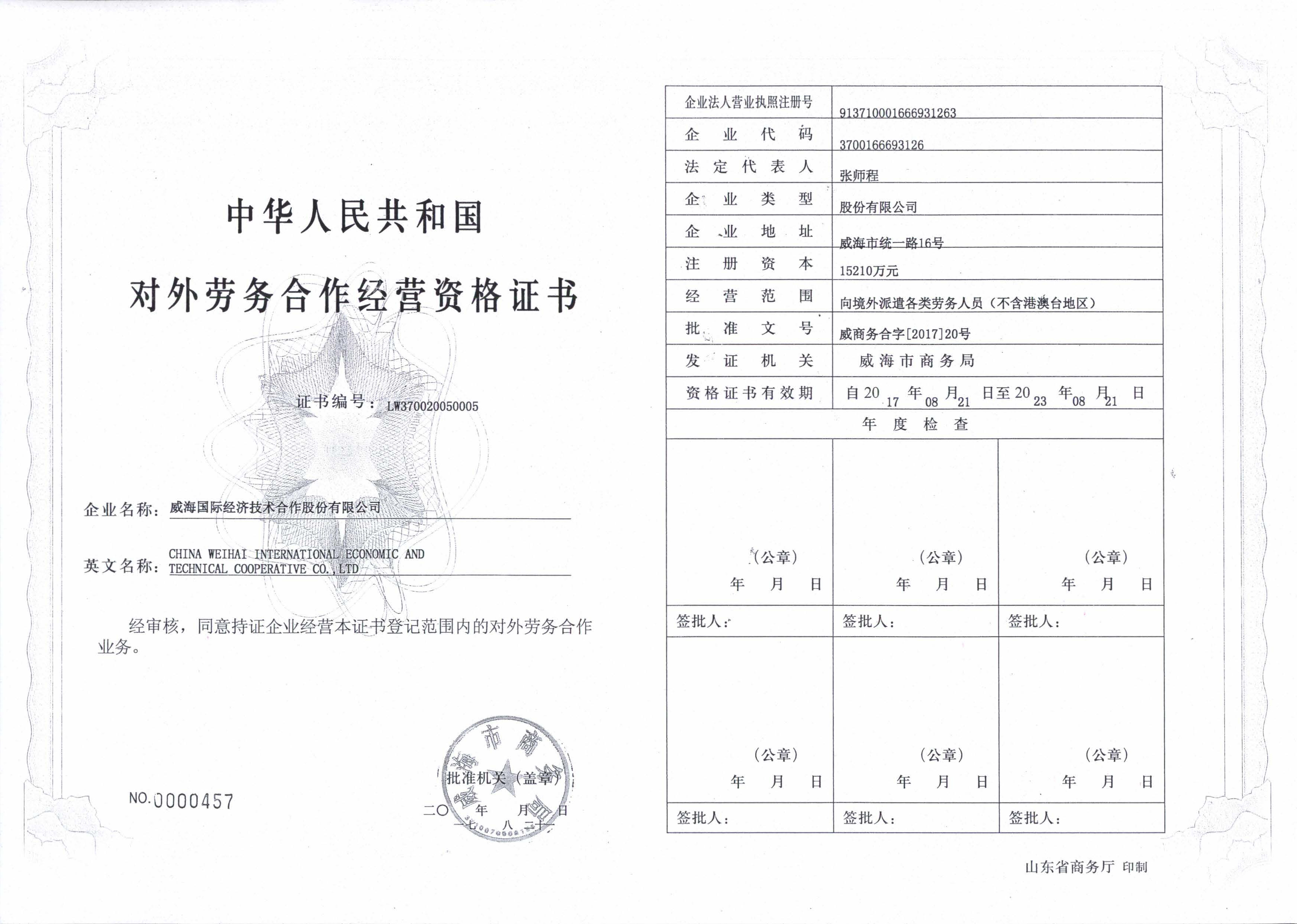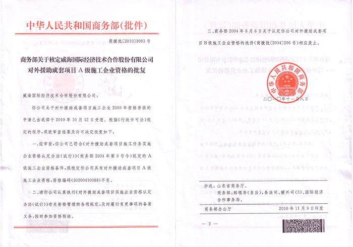 Tous droits réservés.:Weihai International Economic & Technical Cooperative Co.,Ltd(c)N°16, rue de Tongyi, ville de Weihai, Chine 魯ICP備12002982號-3 Tél:86-0631-5233588 Fax:86-0631-5224345 魯公網安備 37100202000269號 Soutien technique: