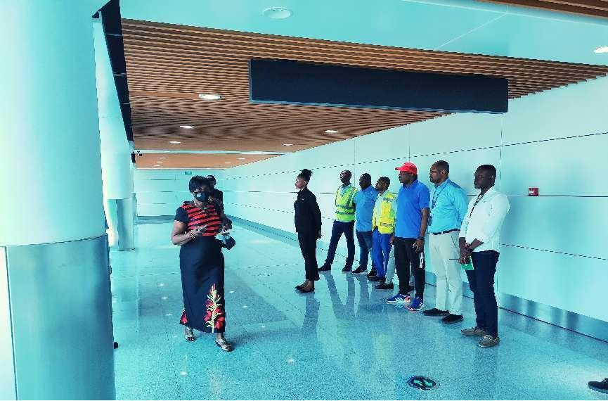 2022年12月3日午前11時(shí)、赤道ギニア?バタ市から離陸した赤道ギニア國家航空會(huì)社の民間航空機(jī)は、當(dāng)社が建設(shè)したマラボ國際空港エプロンに無事著陸し、牽引車に導(dǎo)かれて201號(hào)搭乗橋との接続を果たした。就航後初のフライト搭乗客が次々と搭乗橋を出て、入國検査通路を通り、荷物をスムーズに取り出し、新設(shè)ターミナルビルを離れ、新設(shè)空港の試運(yùn)営は円満に成功した。赤道ギニア大統(tǒng)領(lǐng)就任式に參加する各國の外賓を迎えるために十分な準(zhǔn)備ができている。赤道ギニア民間航空部長と関係委員會(huì)の関係者は新空港に臨んで初の到著旅客を迎え、會(huì)社の周到綿密な指揮、日夜奮闘を通じて今回の試運(yùn)営が成功裏に完成したことに対し、高く評(píng)価した。