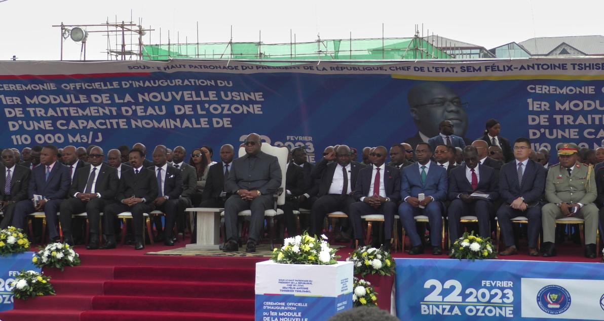 竣工式典には、コンゴ民主共和國(guó)総理、參議院議長(zhǎng)、衆(zhòng)議院議長(zhǎng)、最高裁判官理事會(huì)議長(zhǎng)、水利電力省長(zhǎng)官、外交使節(jié)、水道會(huì)社理事會(huì)メンバー、世界銀行関係者、オーナー社長(zhǎng)などの政府高官と各界の人々が出席。コンゴ民主共和國(guó)正威公司の屠大軍會(huì)長(zhǎng)は招待されて出席した。