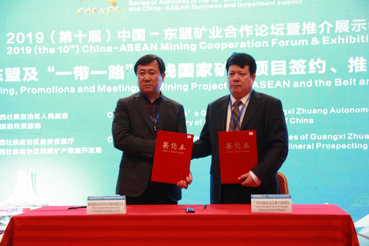 會上,劉正向與會人員介紹了公司情況,對公司礦業(yè)業(yè)務(wù)及重點(diǎn)項目進(jìn)行了推介,并與參會同行進(jìn)行了交流,建立了聯(lián)系。李軍??偙O(jiān)代表公司與廣西第六地質(zhì)隊隊長雷英憑簽訂《非洲礦產(chǎn)資源合作勘查開發(fā)框架協(xié)議》。