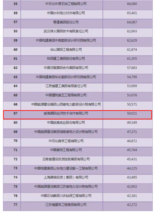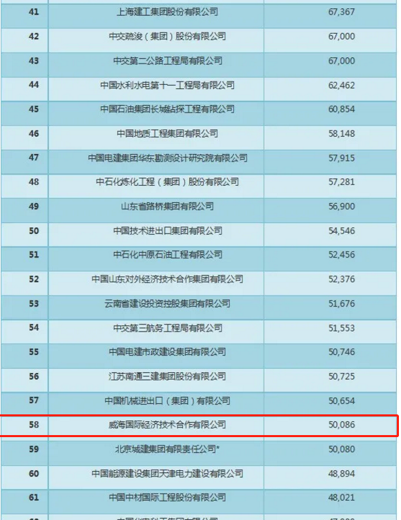 近日,商務(wù)部發(fā)布了2020年中國對外承包工程業(yè)務(wù)完成營業(yè)額和新簽合同額的100強榜單,我公司分別位居第58名和67名。入圍兩項對外承包工程百強企業(yè)名單,充分顯示了公司在艱難形勢下的韌性和良好的發(fā)展態(tài)勢,同時對提升“威海國際”品牌的影響力和推動業(yè)務(wù)的開展具有積極意義。