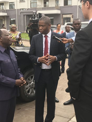近日,剛果(布)總理穆昂巴、大工委部長(zhǎng)布雅及新聞媒體等100余人到剛果(布)姆皮拉住房項(xiàng)目組進(jìn)行參觀。剛果(布)正威公司總經(jīng)理王力鈞、副總經(jīng)理郭永新等接待了總理一行。