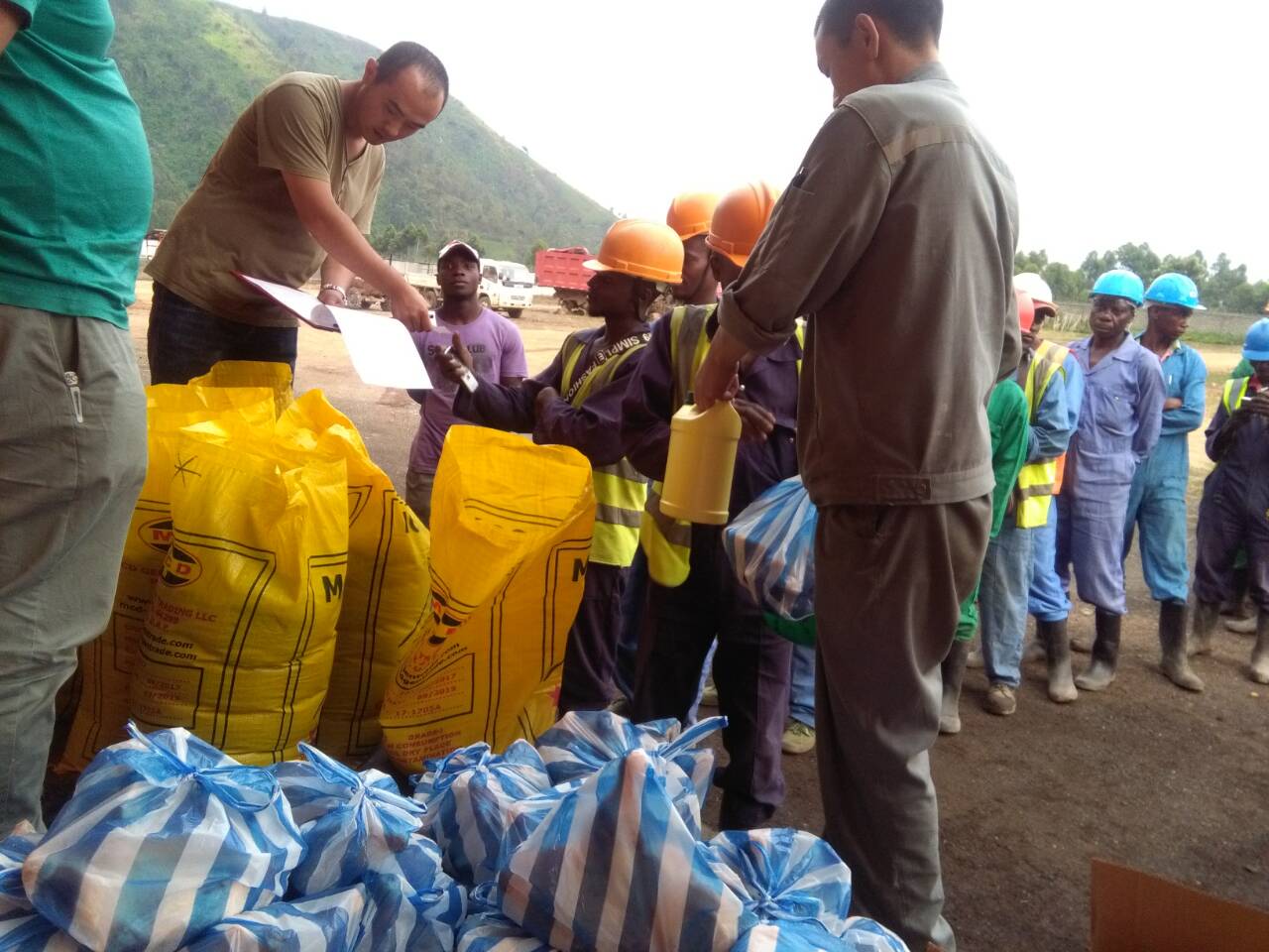 剛果(金)戈馬道路項(xiàng)目組為了讓當(dāng)?shù)貑T工過(guò)上一個(gè)溫暖歡樂(lè)的圣誕節(jié)和新年,在項(xiàng)目部設(shè)立了三個(gè)節(jié)日慰問(wèn)品發(fā)放點(diǎn),給當(dāng)?shù)貑T工發(fā)放了食品和生活用品。前來(lái)領(lǐng)取節(jié)日禮品的當(dāng)?shù)貑T工臉上洋溢著幸福的笑容,紛紛向工作人員表示感謝。